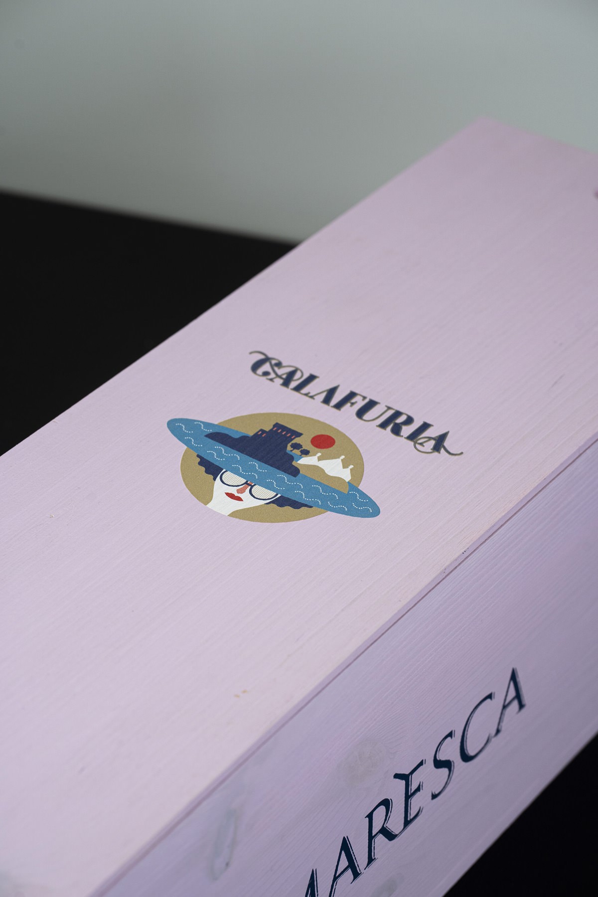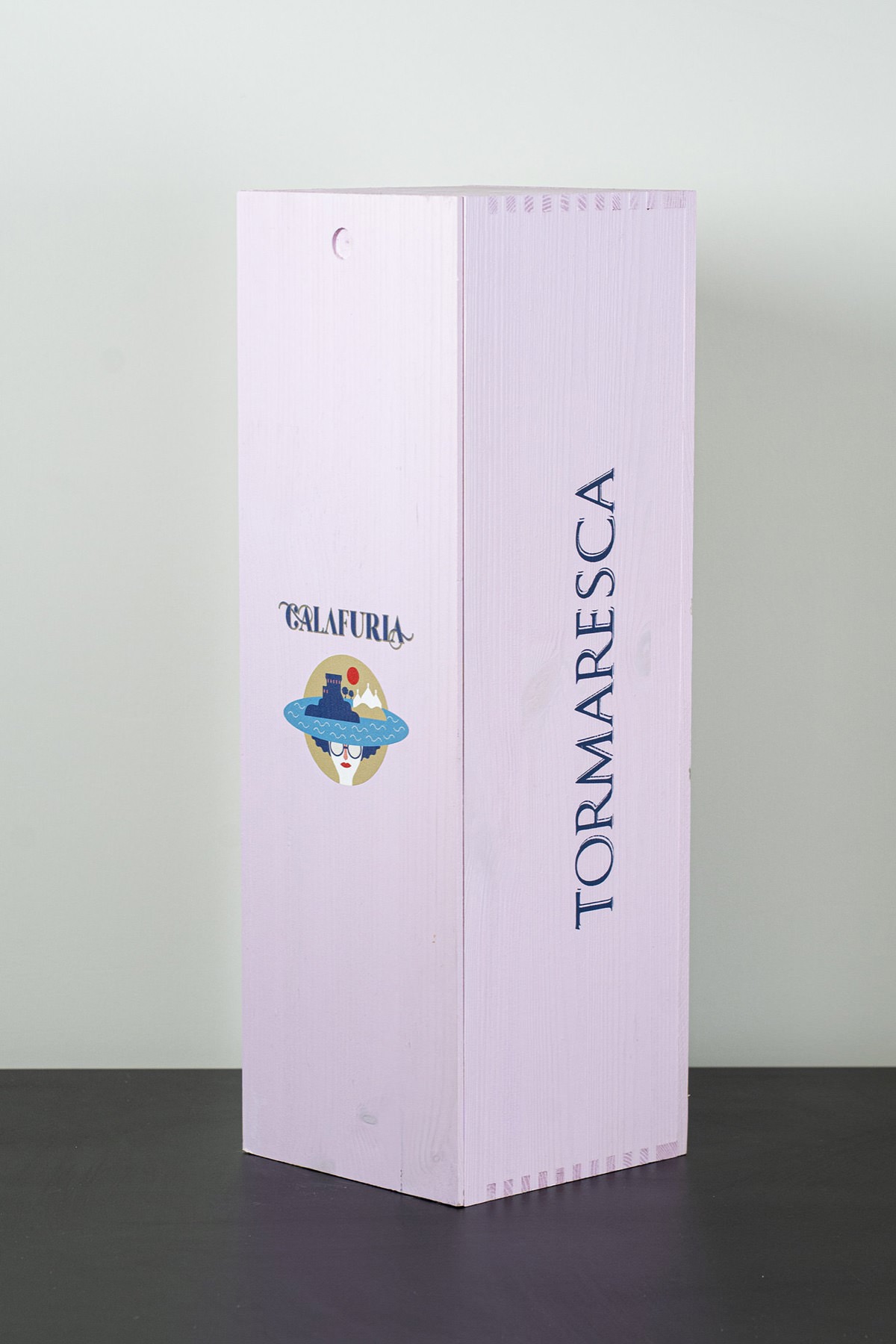 La cassetta Calafuria nasce come espressione visiva e tattile di un vino iconico del Salento, il rosato Calafuria di Tormaresca (Antinori), celebre per il suo colore pesca luminoso e i profumi fruttati di pompelmo rosa, pesca e fiori di lavanda.