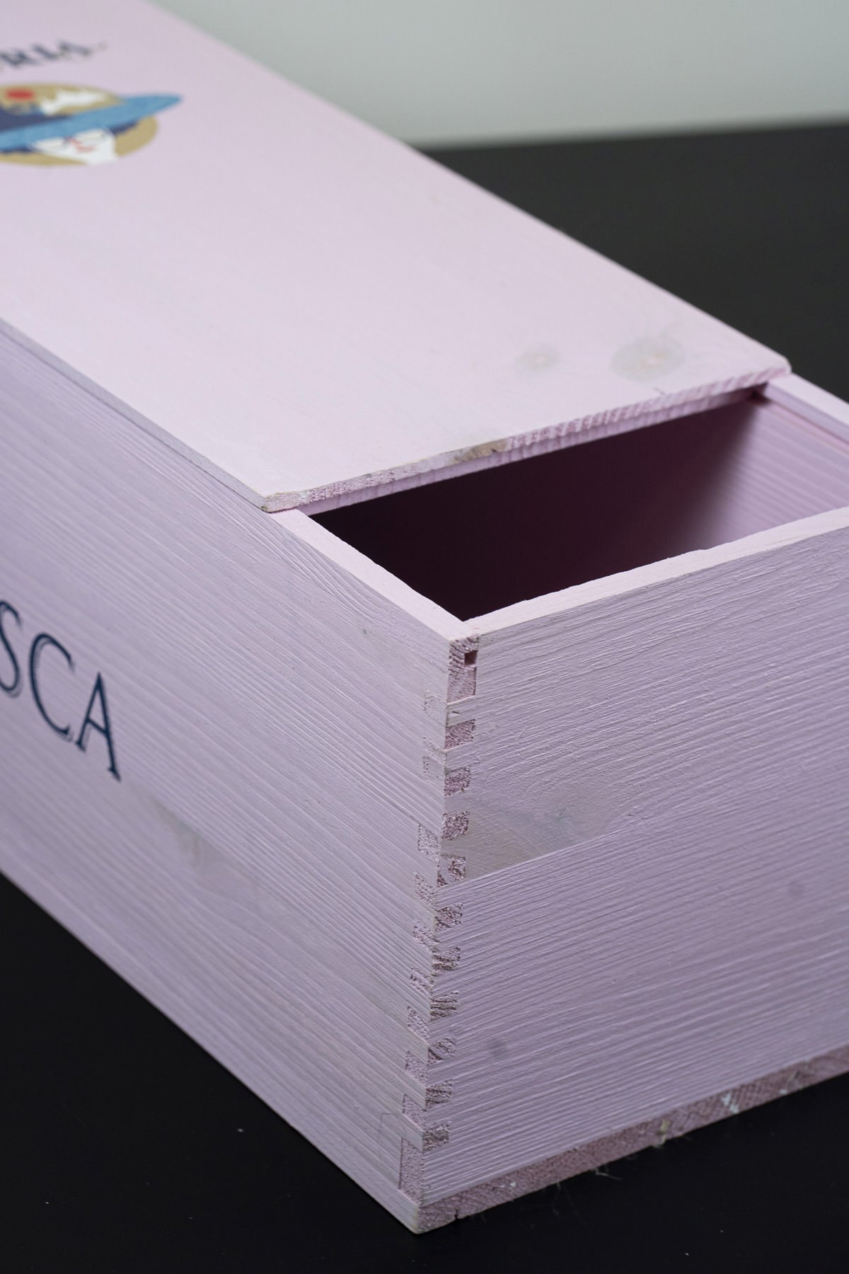 Realizzata in pino massello con coperchio a filo da 12 mm, questa confezione evidenzia la finitura rosa tenue ad acqua che evoca la delicatezza del vino. Le stampe – serigrafiche e digitali UV – valorizzano il design e raccontano la freschezza e contemporaneità del territorio,